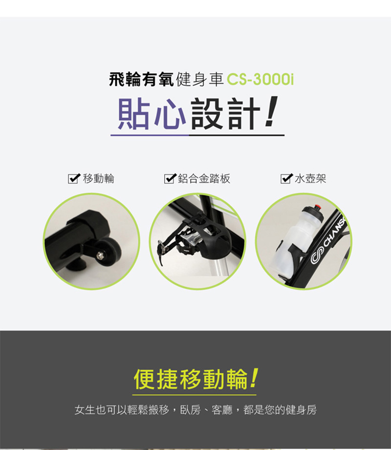 .應穿著寬鬆衣物及跑步運動鞋來使用健身車