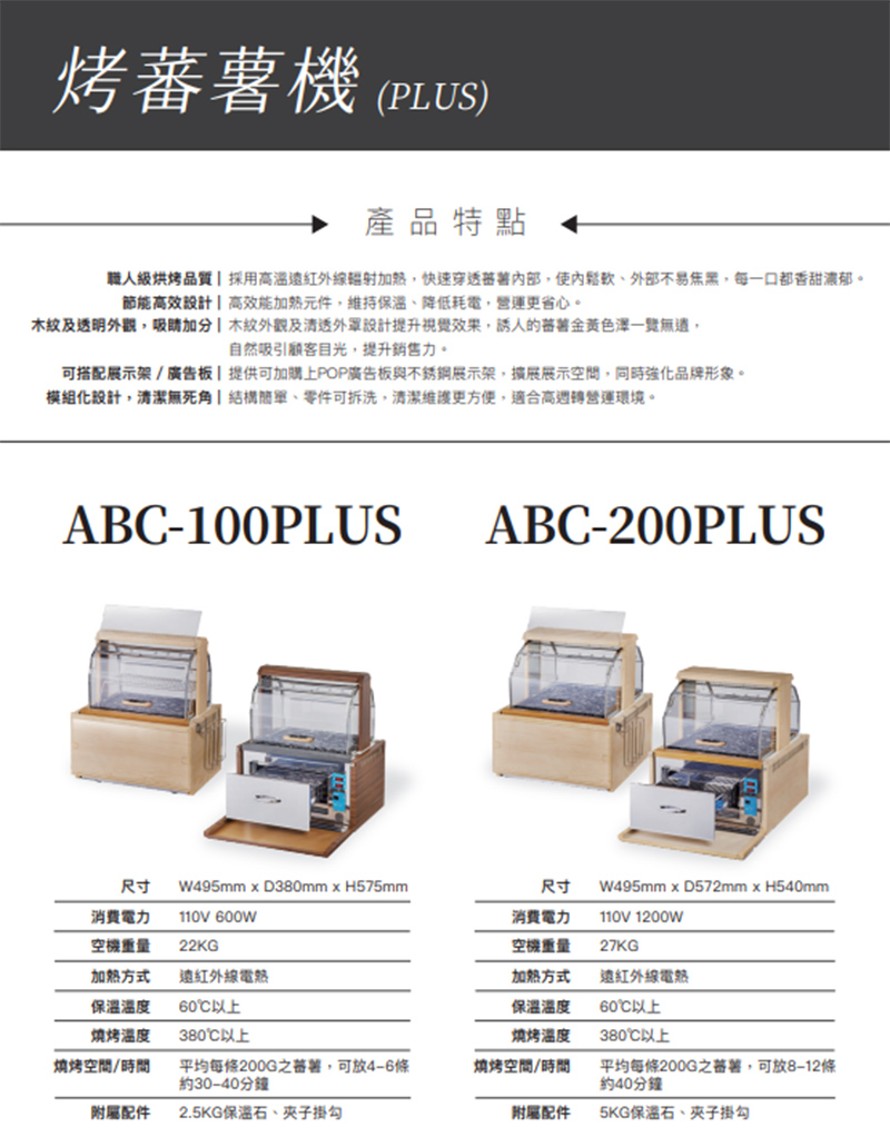 【商品規格】 型號:ABC-100Plus 尺寸:495x380x575mm 電壓瓦數:110V 600W 加熱方式:遠紅外線電熱 【商品介紹】 【廠商介紹】 近年來,社會生活結構的改變,外食人口比例的增加。本公司亦有鑑於此, 對於外食需求提供消費者,在清蒸與保溫食品上,提供物美價廉的食品機器, 讓多樣化的飲食文化亦能與時代之進步相進展。因此近年來本公司開發生產販售各種飲食機器, 都能夠得到各界的好評。 本公司亦朝著國際經營多角化,對於開發、設計、製程、物流與售後服務上, 秉持著信用、確實以專職之理念,對業界裡販售業者,提供最優的食品機器,以滿足消費者的需求。 廠商代號:CR2 責任代號:QMW