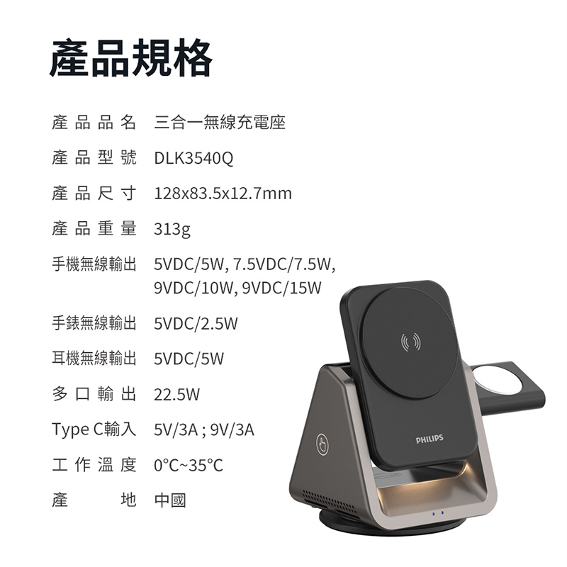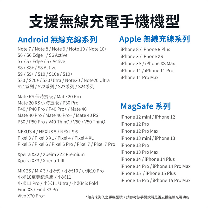 手機無線輸出 : 5VDC/5W,7.5VDC/7.5W,9VDC/10W9VDC/15W