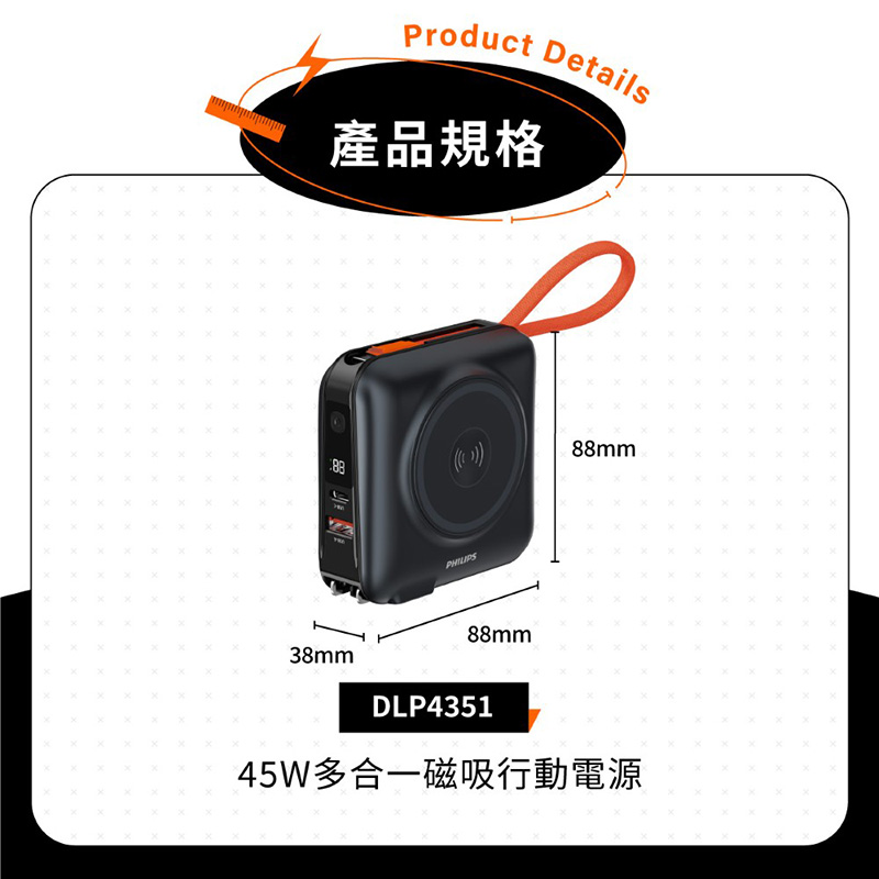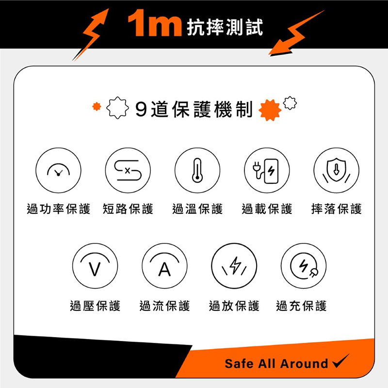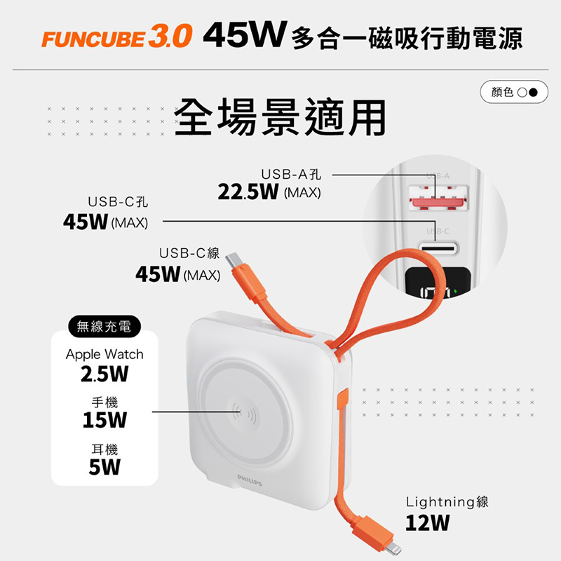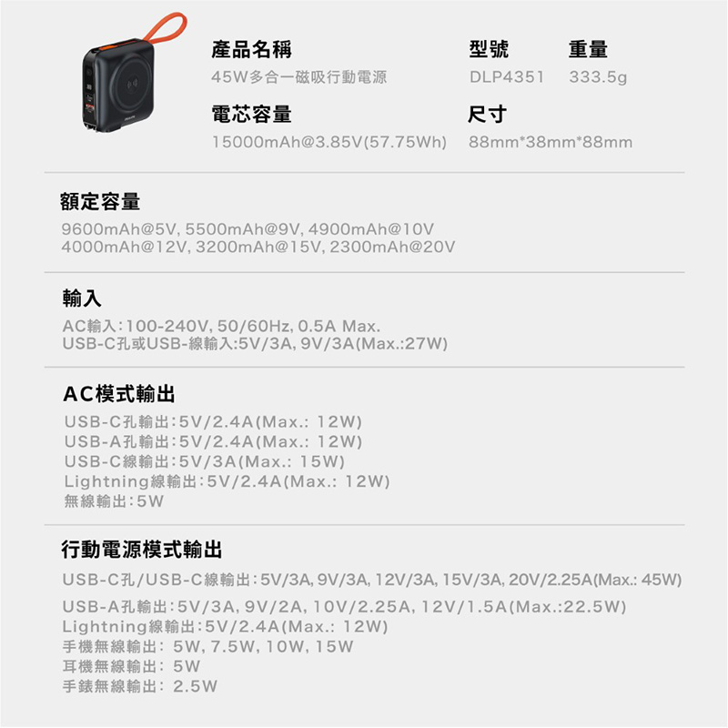 USB-A輸出:5V-3A,9V-2A,10V/2.25A,12V-1.5A(Max.:22.5W)