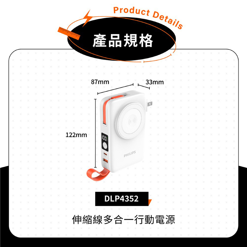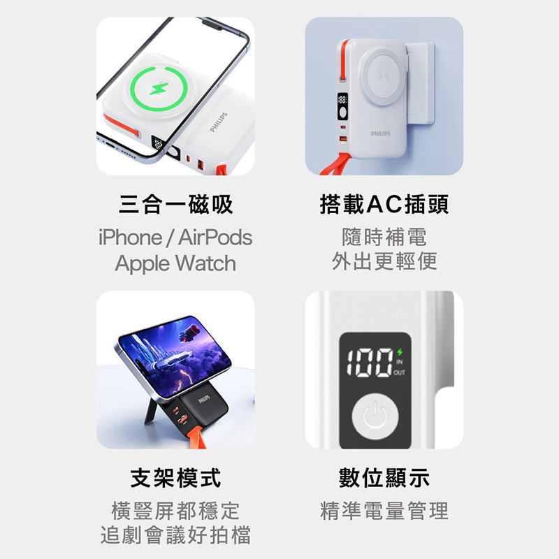 ◎摺疊AC插腳/數碼屏/磁吸充電+支架模式