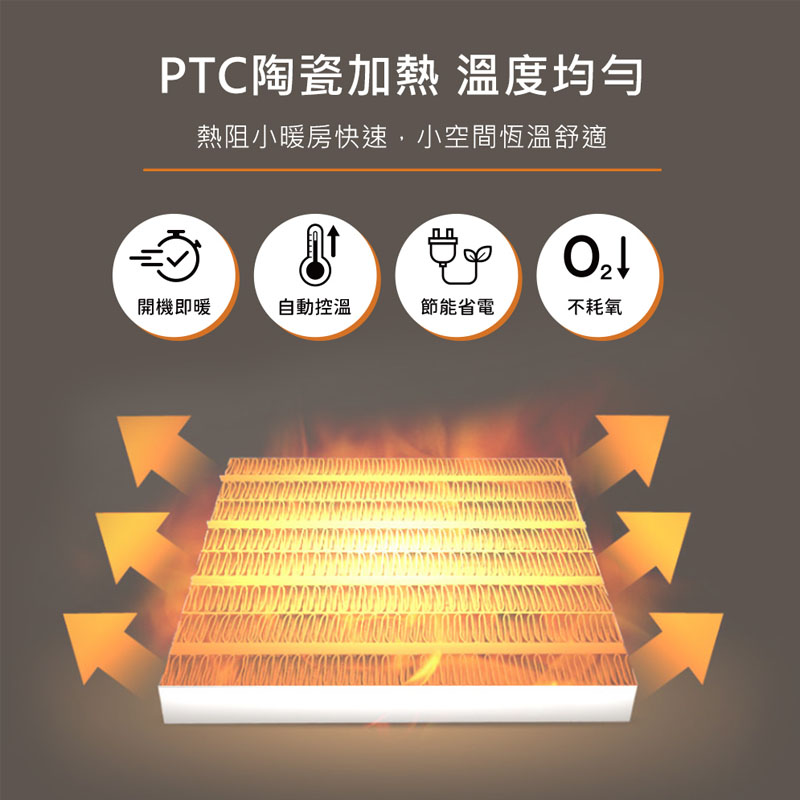 ◎PTC陶瓷發熱器材質,低耗氧不悶熱,快速加熱