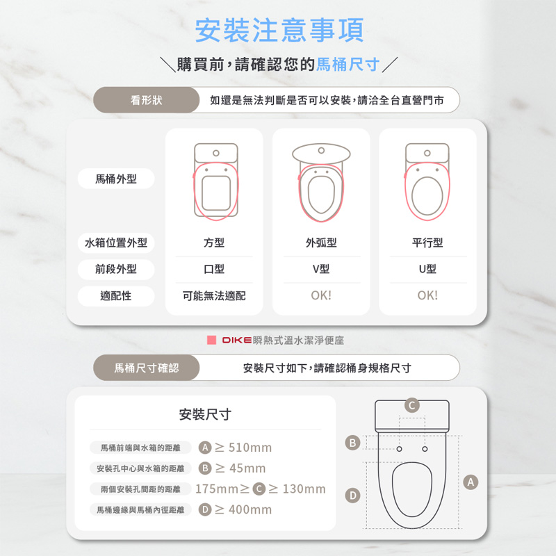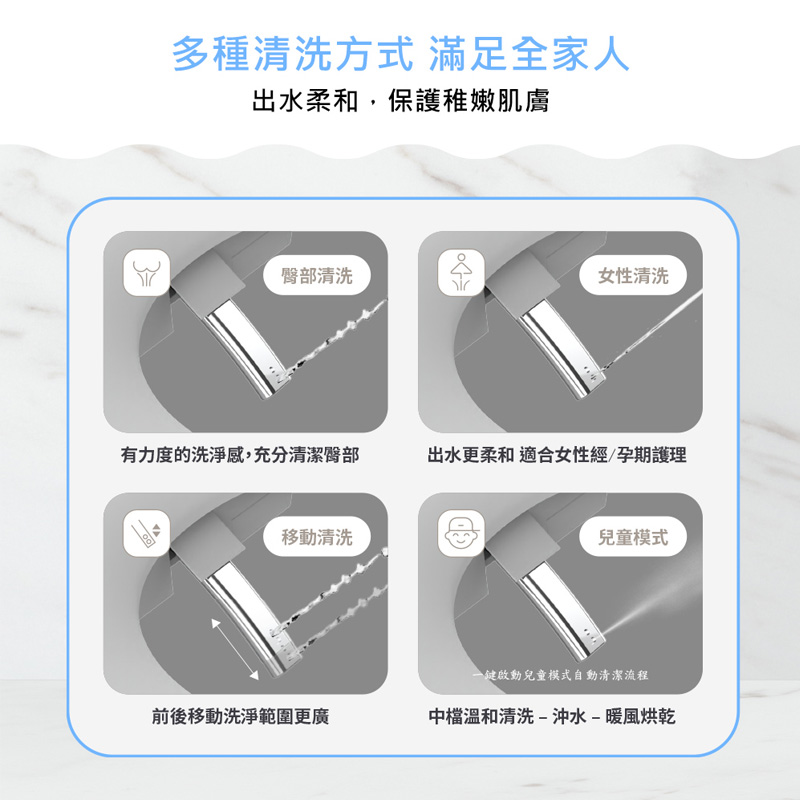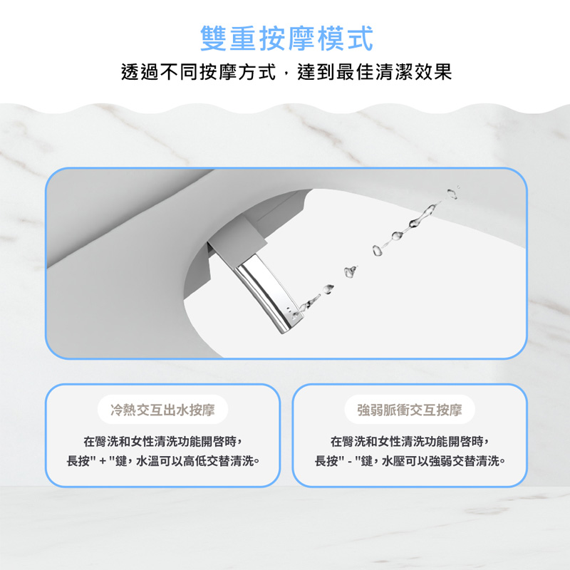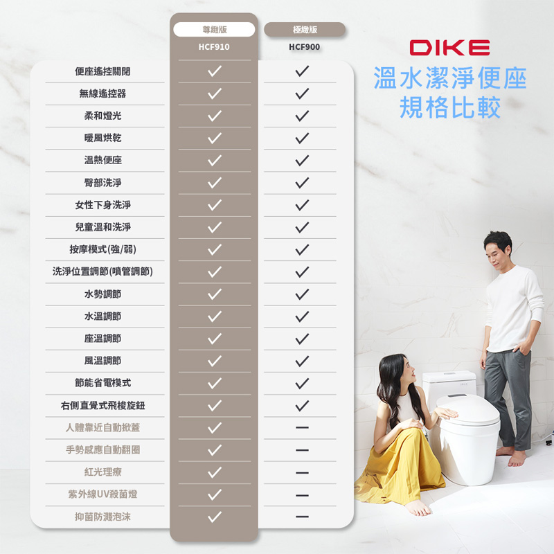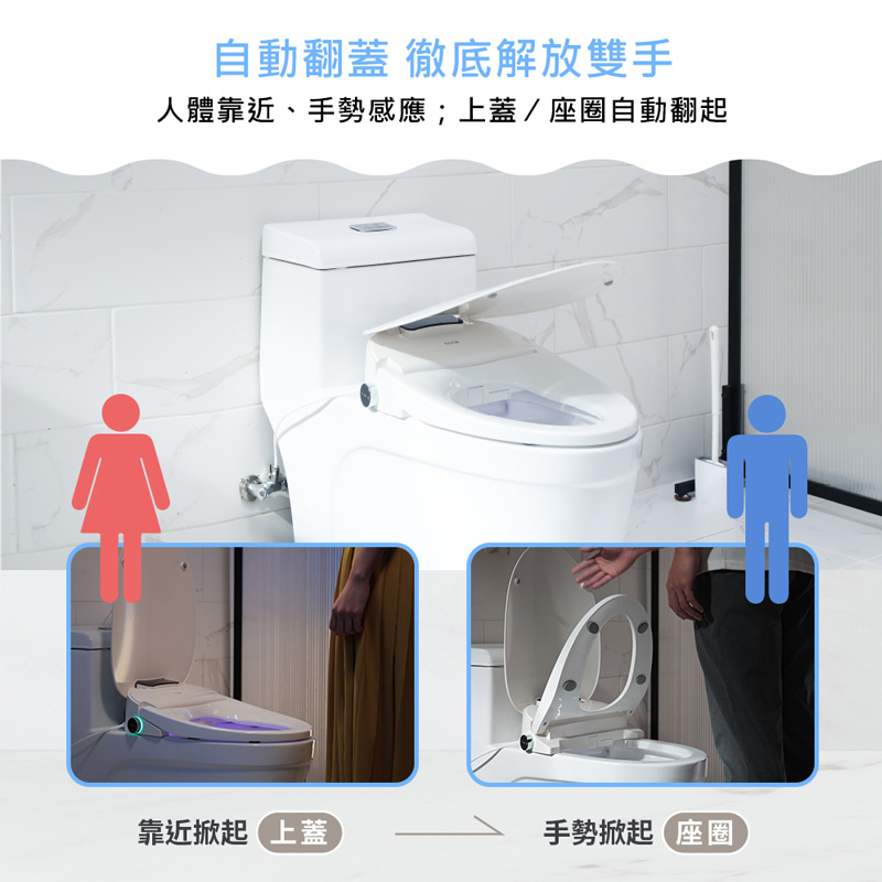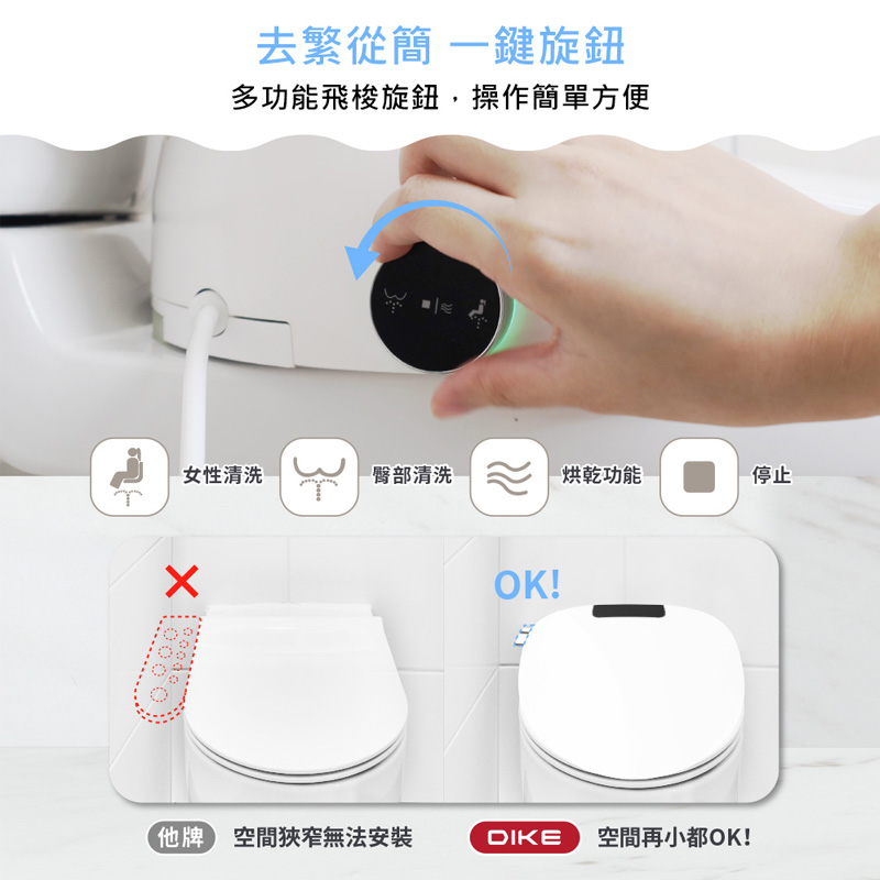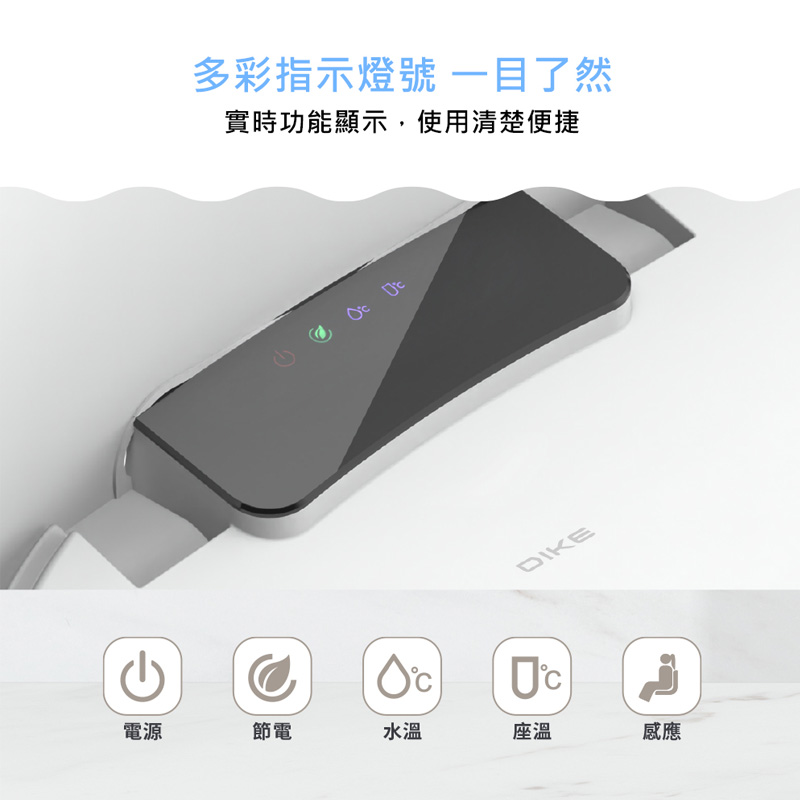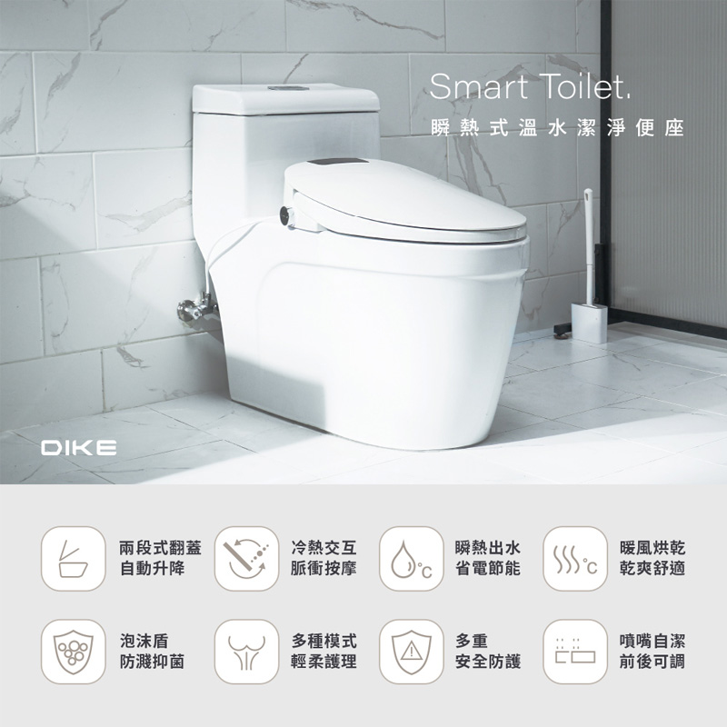 通過BSMI認證檢測,四段水壓調節 + 瞬熱 + 烘乾、搭載泡沫盾、噴嘴自清潔技術。 全自動掀蓋與洗淨,屁屁的健康就由DIKE瞬熱式溫水潔淨便座照顧,你只要輕鬆享受智能生活。