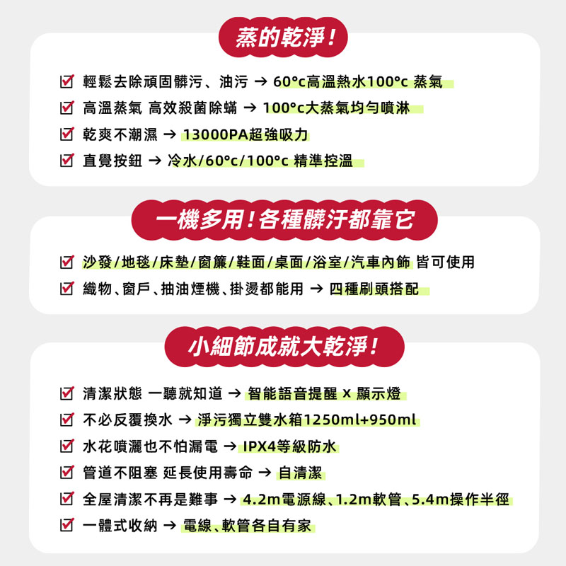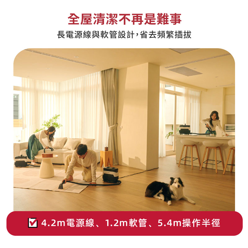 ◎4.2公尺超長電源線,1.2公尺清潔軟管