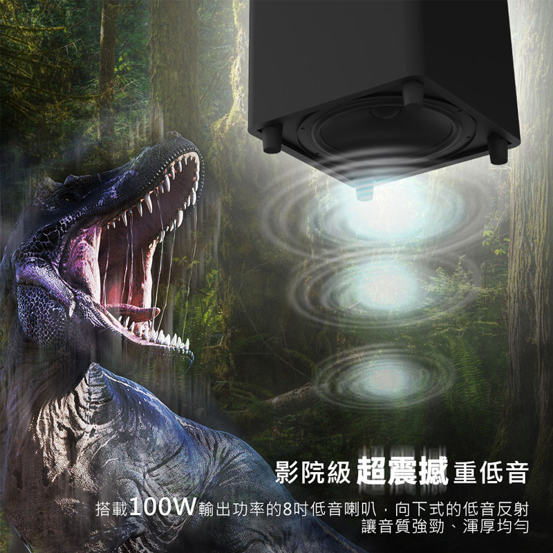 ◎100W無線重低音箱,立體聲環繞音效